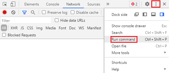 1. 크롬 개발자 툴( F12 또는 Ctrl+Shift+i 키 입력 )의 Run command 실행